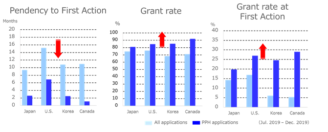 Under the PPH framework, an application determined to be patentable by the office of earlier examination is allowed to undergo accelerated examination at the office of later examination. The JPO operates the PPH Portal site providing statistical information such as average pendency and grant rate of PPH applications. The site also provides easy access to the PPH procedural guidelines of participating IP Offices. Through the portal, you can efficiently obtain information from more than 50 Offices worldwide.