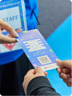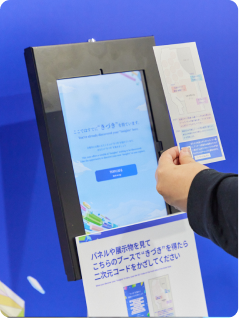 知財のチカラ実感・体験ゾーンや日本弁理士会ゾーンでパネルや展示物を見て、“きづき”を得たら二次元コードをかざしてください。