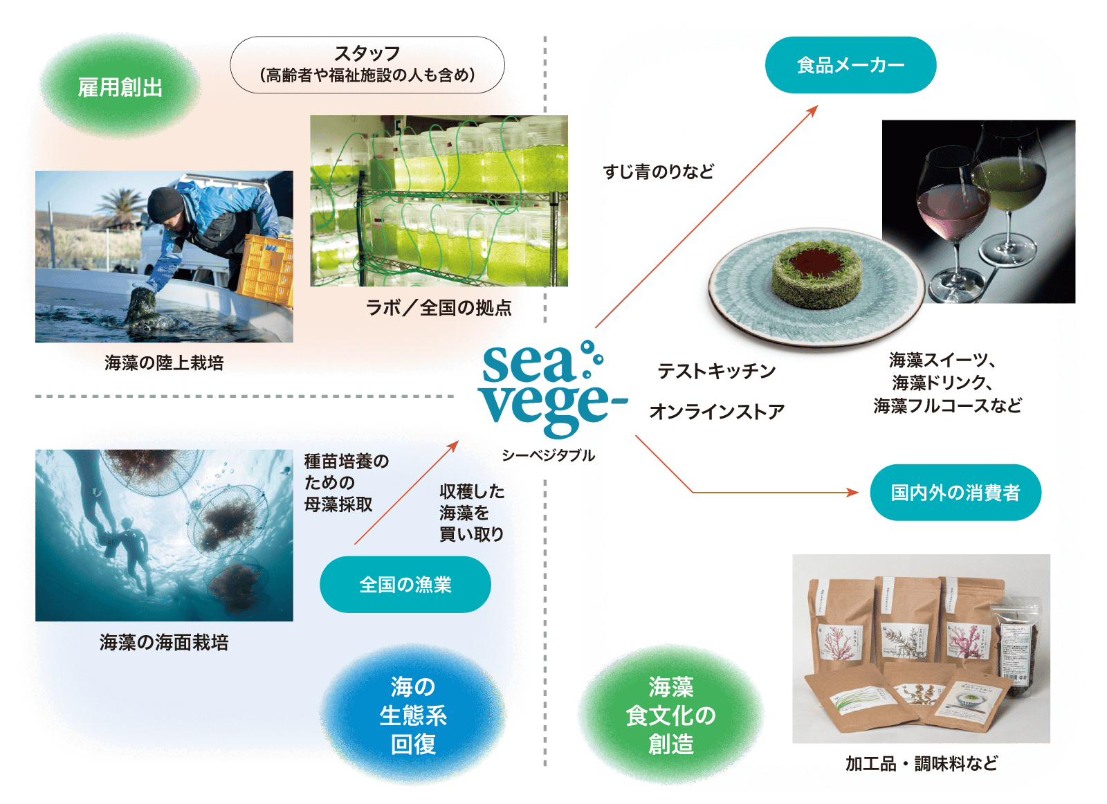 海を豊かにし、各地で漁業の活性化や、新たな産業と雇用の発生につながる。そして多くの人がヘルシーでおいしい海藻食を享受できる。海藻事業は、自然環境とビジネスの二つのエコシステム(生態系)を育て、誰もが幸せになれる稀有な分野だと思います。