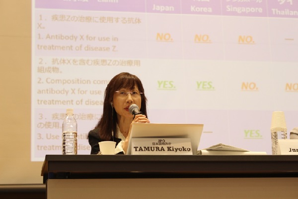 その後、パネリストとして田村首席審判長、韓国特許庁のJung Da-Won審判官、中国国家知識産権局のZhang Lin部門長、シンガポール知財庁のCao Ye審査官、タイ知財局のKriangsak Khownium委員、ベトナム知財庁のLe Huy Anh副長官が参加して、「各国における審判実務一般について」をテーマとしたパネルディスカッションが行われました。さらに、モデレータとして阿部・井窪・片山法律事務所の弁理士 小林 浩先生をお招きし、「各国における先端技術分野の審理について」をテーマとして、医薬分野及びIT分野に関連する仮想事例を用いて、各国における審理手法についてパネルディスカッションが行われました。