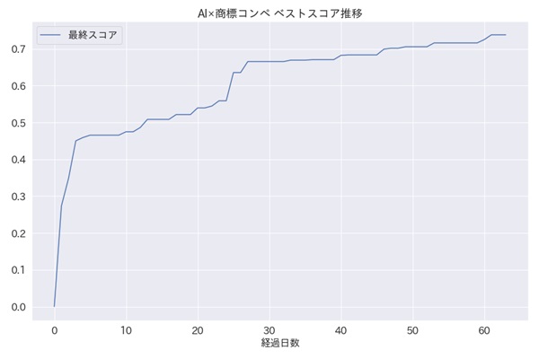 (コンペティション開催中の暫定第1位のスコアの推移を示したグラフです。