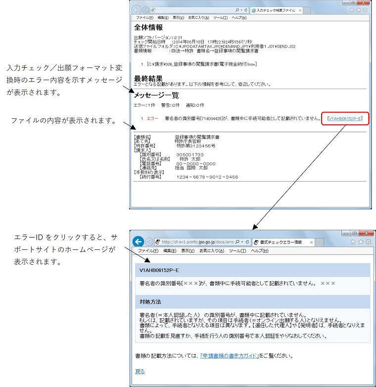 (2)入力チェック結果ファイルを選択し〔表示〕ボタンをクリックします。