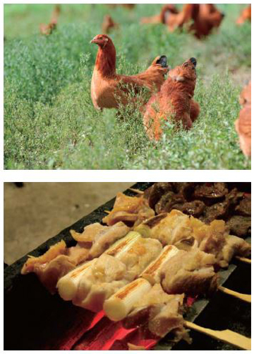 秋田比内鶏(オス)とロード種(メス)を掛け合わせ、秋田県比内地方で生産した食用鶏肉